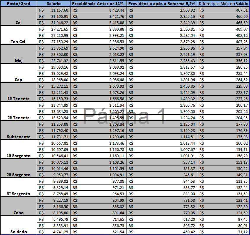 Veja a tabela abaixo para os Militares da Ativa: